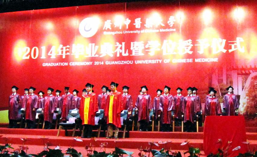 2014年 6月26日下午,国际学院2014届毕业典礼暨2014年学位授予仪式在大学城校区大会堂隆重举行,近700名境外毕业生及亲友出席了毕业典礼暨学位授予仪式。今年,我校境外毕业生共有390人,其中本科生129人,硕士生124人,博士生137人,分别来自18个国家和地区。校领导及20余名主礼教授出席了仪式,学位评定委员会主席、校长王省良教授亲自为我院获得学士、硕士和博士学位的毕业生授予了学位。
