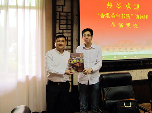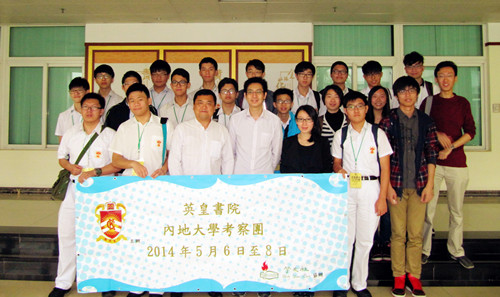 2014年5月8日上午,香港“英皇书院”访问团一行18人赴我校交流访问。此次访问主要想了解香港学生升学内地高校的情况,同时通过观课、参访,体验大学学习生活。国际学院副院长何军,港澳台学生工作办公室主任苗青,范鸿飞老师、郭钰老师以及在读的5名香港学生接待了访问团一行。