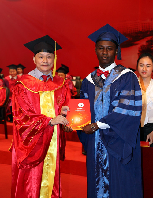 6月27日下午,国际学院2013届毕业典礼暨2013年学位授予仪式在大学城校区大会堂举行。学校领导、20余名主礼教授以及2013届全体毕业生及亲友参加仪式。学位评定委员会主席、校长王省良教授亲自为我院获得学士、硕士和博士学位的学生逐一授予学位。