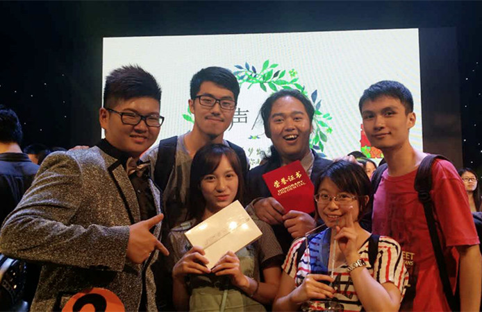 5月11日晚,我校主持人大赛在大学城校区隆重举行。我院参赛选手2014级香港学生戴伟豪夺得大赛粤语组冠军的优异成绩,2014级马来西亚学生李毅进也获得了优胜奖的佳绩,他们再一次为学院增光添彩。
