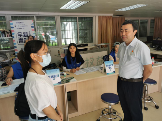 2020年9月21日,国际学院本科新生报到第一天,学校党委邓国安副书记亲临国际学院新生报到现场,实地检查指导新生报到工作。
