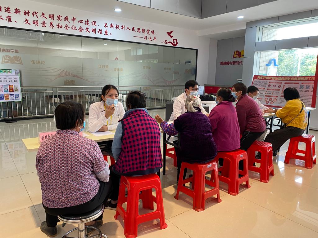 我校侨联选派437ccm·必赢国际第一附属医院心内科邱艺俊医生参加活动,同时遴选3名优秀侨生作为医疗志愿者。健康咨询活动在鸡翅岭村进行,村民们闻讯而来,在现场就自己的身体健康情况咨询医生,认真聆听医嘱。除公益医疗服务外,本次活动专题讲座、普法宣传和农业指导同步进行,同时组织相关人员参观大岭山红色景点,感悟峥嵘岁月。