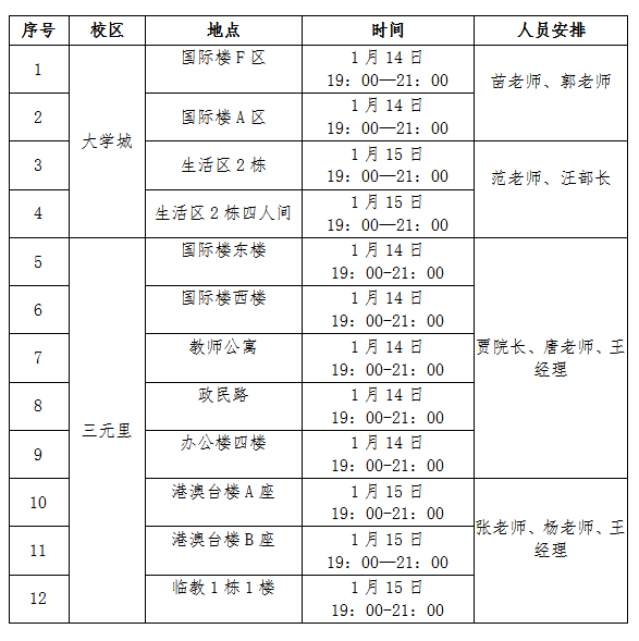 2018-2019第一学期期末宿舍走访安排表