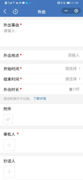 第三步:在外出页面填写具体事项,提交班主任审批。